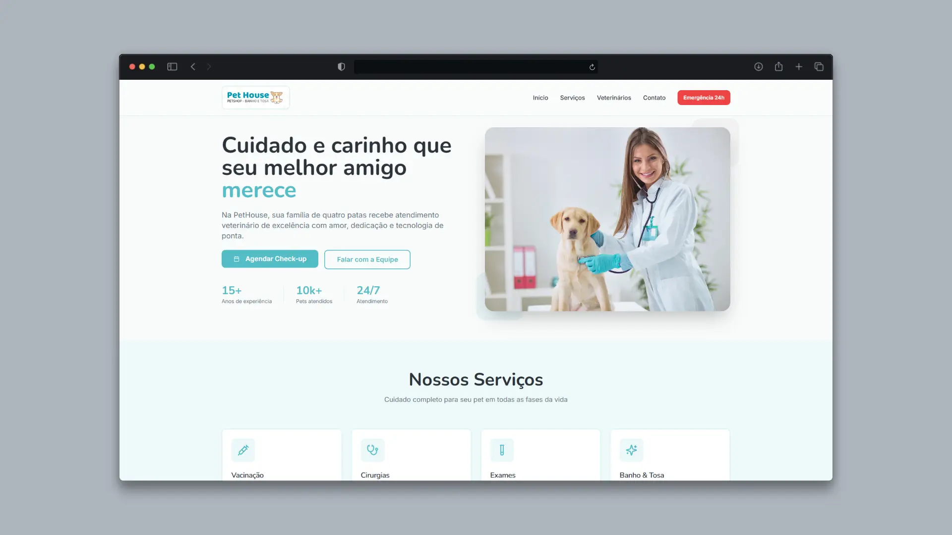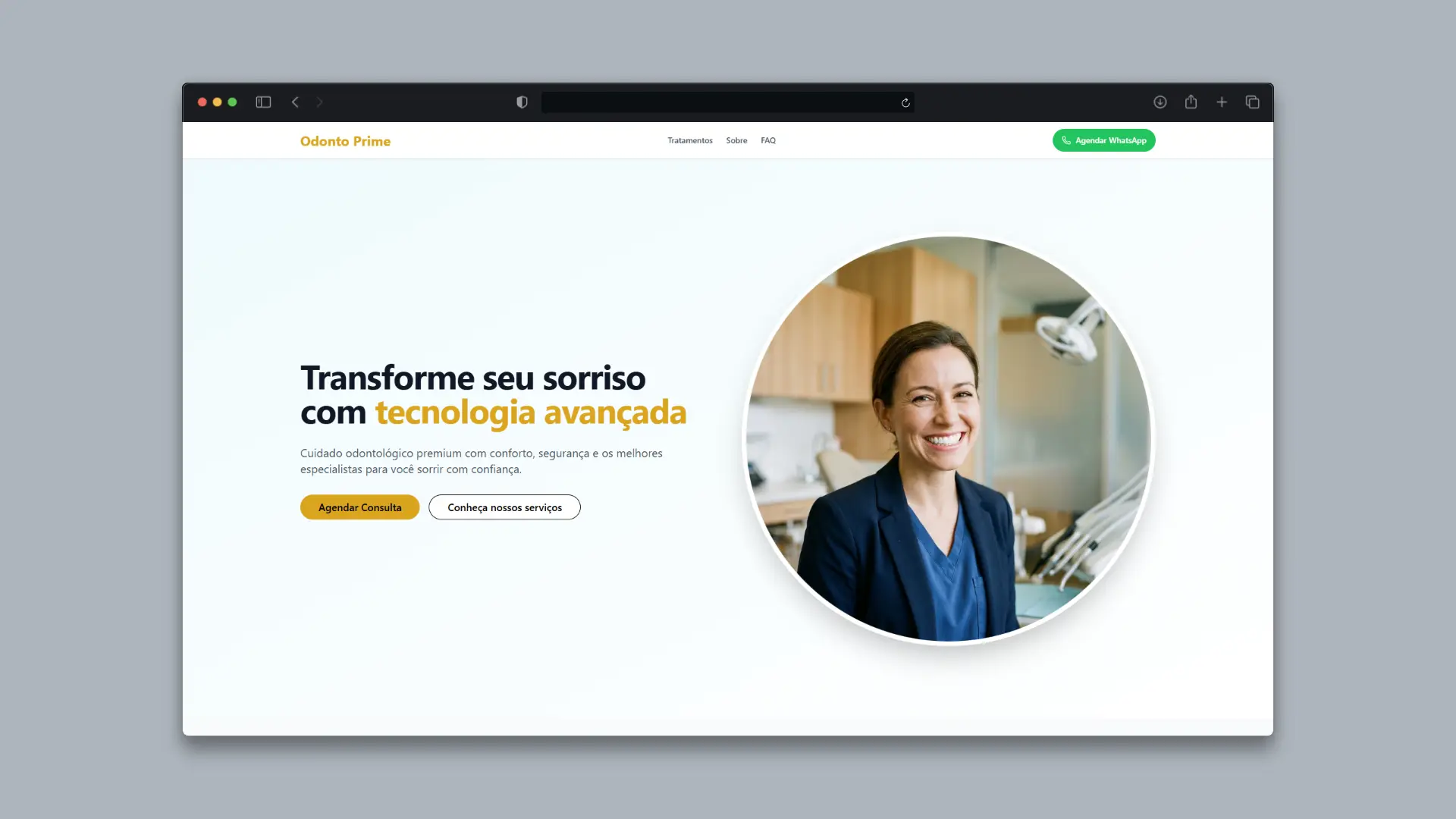 A sede oficial da sua empresa na internet. Um design que transmite confiança, conta sua história e organiza seus serviços. Totalmente gerenciável para você atualizar quando quiser.